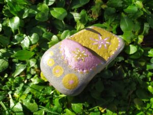 Leuchtend bemalte Steine inspirieren Dich auf Deinem Weg. Finde dafür die pinken Schatzdöschen. 12 Stück haben wir Dir auf dem knapp 4 km langen Spaziergang versteckt.